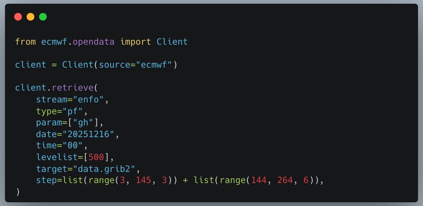 I used the ECMWF open data available at a limited time and space resolution. Once you installed the package then you can start downloading the data